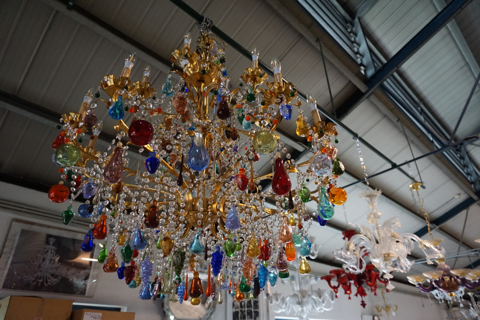 Chandelier in a warehouse.