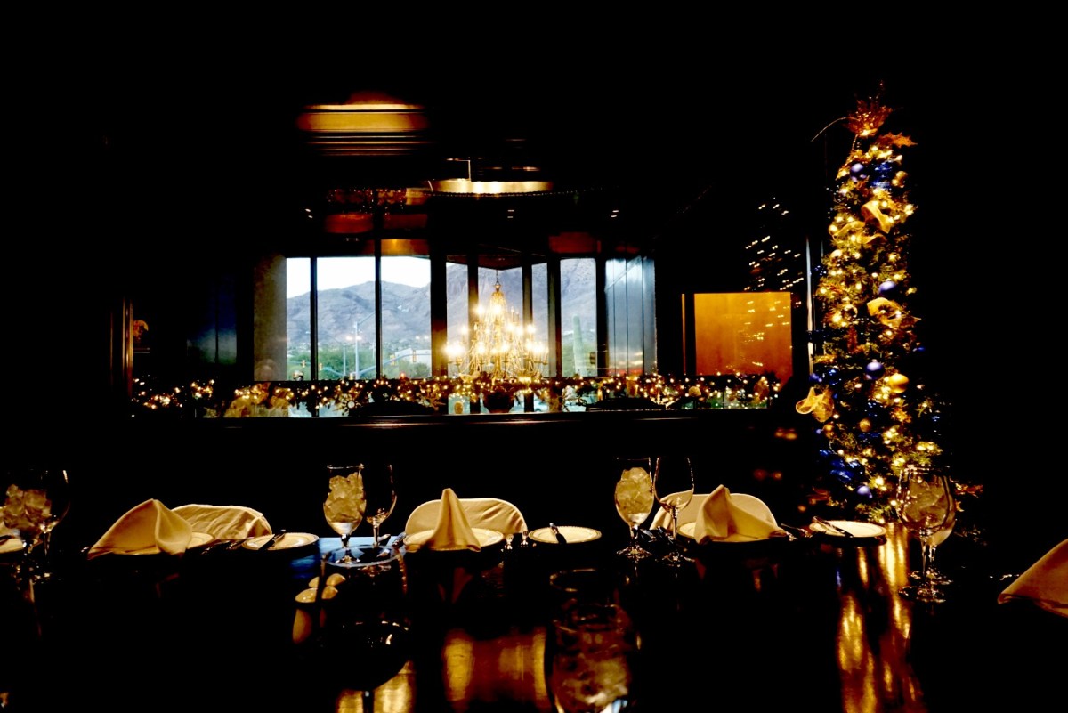 We were treated to dinner at the Five Palms Steak and Seafood restaurant for a company Christmas party.  G & I get there early to make sure all is set up.